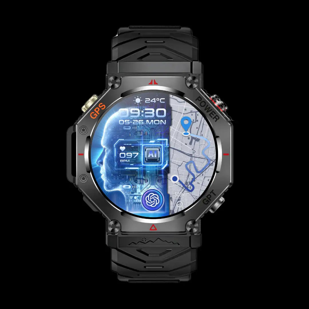 El Militar Pro 9k GPS lleva la experiencia smartwatch a otro nivel con la integración de ChatGPT, tu asistente personal inteligente directamente en la muñeca. Puedes consultar información, pedir recomendaciones, organizar tu día, recibir recordatorios o resolver dudas al instante con solo un toque o comando. Es como tener un cerebro extra siempre contigo, disponible para ayudarte cuando lo necesites.